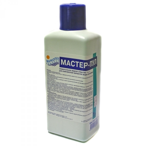 мастер-пул" ― универсальное бесхлорное жидкое средство «4 в 1» для комплексной очистки воды плавательных бассейнов.