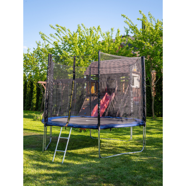 Батут Funfit PRO 312 см с защитной сеткой и лестницей. Батут 312 см., способный порадовать Вас и Вашу семью. Является прекрасным дополнением к любому развлекательному мероприятию, незаменим во время тёплых солнечных дней. Высота рамы основания этой модели составляет 76 сантиметров, и забраться Вы на него сможете при помощи предусмотренной лестницы, идущей в комплекте. Полотно обладает прекрасной упругостью и выдерживает 180 килограммов. Особое внимание при изготовлении батутов уделяется качеству, так же стоит обратить внимание на используемое количество пружин, в данном размере батута используется 60 шт. при толщине пружин 3,1 мм, что позволяет увеличить высоту прыжка и нагрузку на само прыжковое полотно.