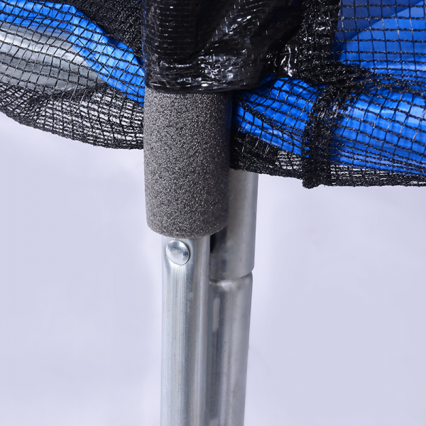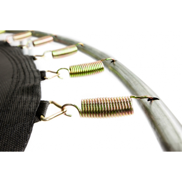 - Плотное защитное покрытие толщиной 12мм и шириной 36 см полностью закрывает пружины и каркас рамы батута, тем самым исключая падение ног в эту часть и последующих за этим травм. Прыжковое полотно изготовлено из прочного и упругого полипропилена. Выдерживает высокие и длительные нагрузки, устойчиво к влаге и механическим повреждениям. Также полотно имеет защиту от ультрафиолета, благодаря чему полотно не выгорает и греется намного меньше.