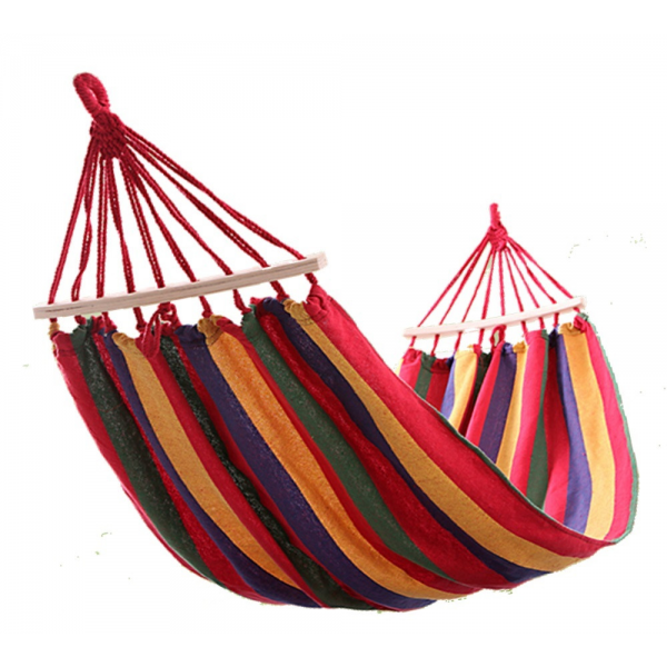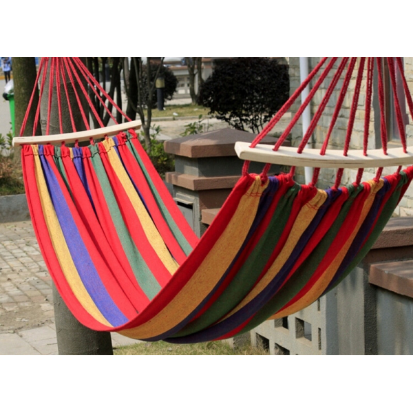 Гамак для отдыха поможет Вам создать соответствующее настроение, раскрепоститься и забыть о повседневных заботах. В гамаке можно и почитать книгу, неспешно дегустируя свежевыжатый апельсиновый сок, и вздремнуть, и просто позагорать. Легкий, и прочный, расслабляющий и убаюкивающий, он как нельзя лучше подходит для летнего ничего неделанья). Основные преимущества тканевого гамака: Тканевая основа: тело не отдавливается при длительном лежании (в отличие от сетчатых гамаков). Стойкость к перекручиванию: что позволит Вам комфортно и безопасно чувствовать себя в гамаке. Гамак имеет изогнутые перекладины, что позволит более комфортно на нем разместиться.
