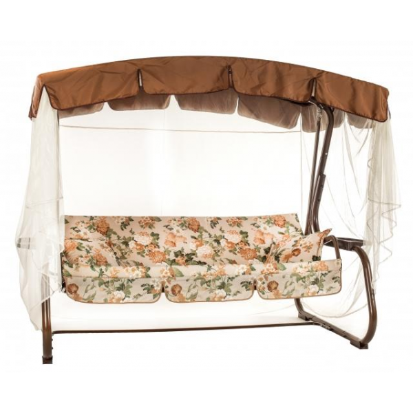 Садовые качели Турин трехместные, рассчитаны для комфортного отдыха на свежем воздухе. Опоры в виде дуг, позволяют расположить их даже на неподготовленной поверхности. Особенности: количество мест: 3; каркас: стальная труба d 51 мм толщиной 1,4 мм с полимерным покрытием; каркас сиденья: оцинкованная сетка; опоры: дугообразные; мягкий элемент: ткань напечатанная; наполнитель сиденья: листовой поролон толщиной 80 мм; наполнитель боковин: поролон толщиной 20 мм; тент: ткань с водоотталкивающей пропиткой; регулировка спинки: звеньями цепи на требуемый угол наклона, с фиксацией в горизонтальном положение. Москитная сетка, в комплекте, 2 подстаканника.