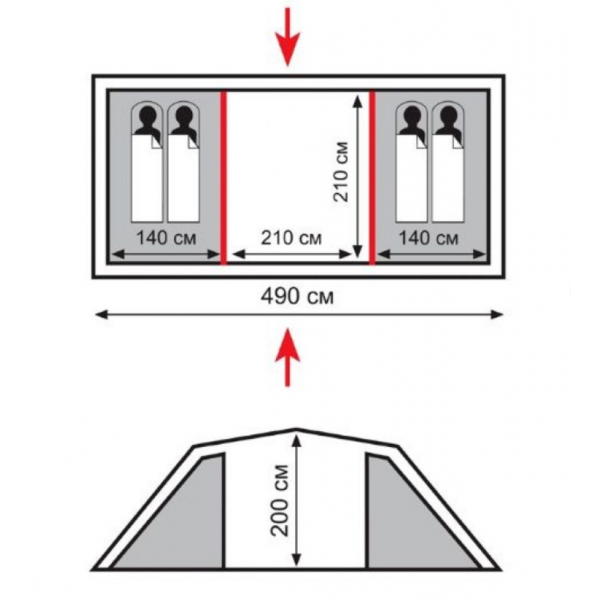 - Двухслойная кемпинговая палатка с двумя входами и большим тамбуром