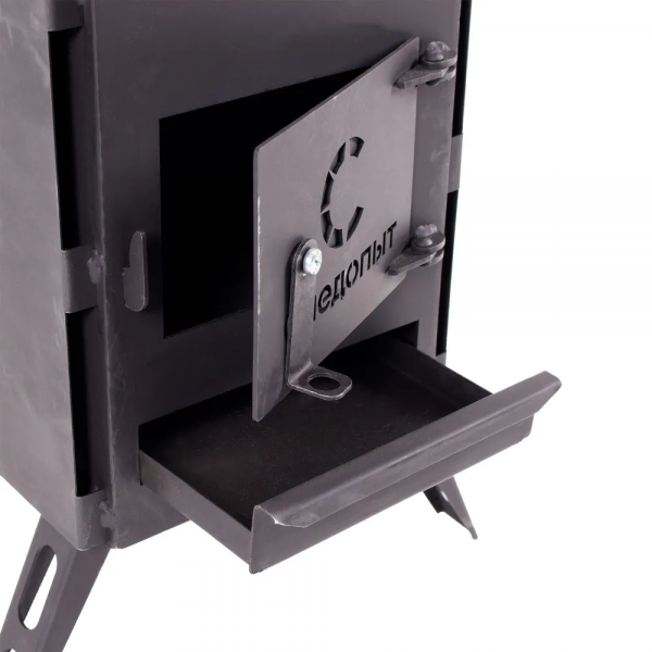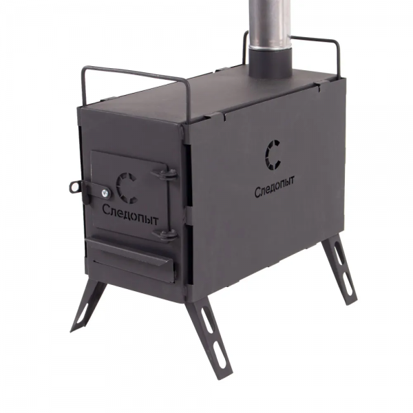 Печь дровяная «Следопыт» предназначена для поддержания необходимой температуры в жилых помещениях или палатках при соблюдении мер безопасности. В качестве топлива допускается использовать дрова или брикеты топливные. Размер дров не должен препятствовать плотному прилеганию дверцы камеры сгорания. Печь изготовлена из стального листа толщиной 2 мм. Дымоотвод изготовлен из стального листа толщиной 0,5 мм. Экраны изготовлены из стального листа толщиной 1,5 мм. Складные ножки облегчают сборку, а встроенные экраны защищают от ожогов.