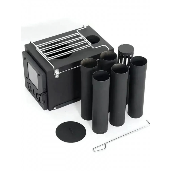 Классический дизайн буржуйки позволяет быстро разжечь огонь и поддерживать необходимую температуру, что особенно актуально в зимний период. Печь идеально подходит для использования как в палатках, так и в других временных укрытиях. Она прекрасно выполняет свои функции в качестве отопительного прибора, создавая уют и защищая от холода.