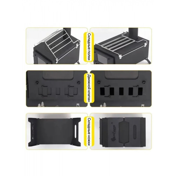 Ключевым преимуществом данной печи является её мобильность. С размерами 21х32х25 см, она достаточно компактна для удобной транспортировки, что делает её отличным выбором для походов и охоты. Печь легко устанавливается и разбирается, что добавляет удобства в процессе подготовки к отдыху на свежем воздухе.