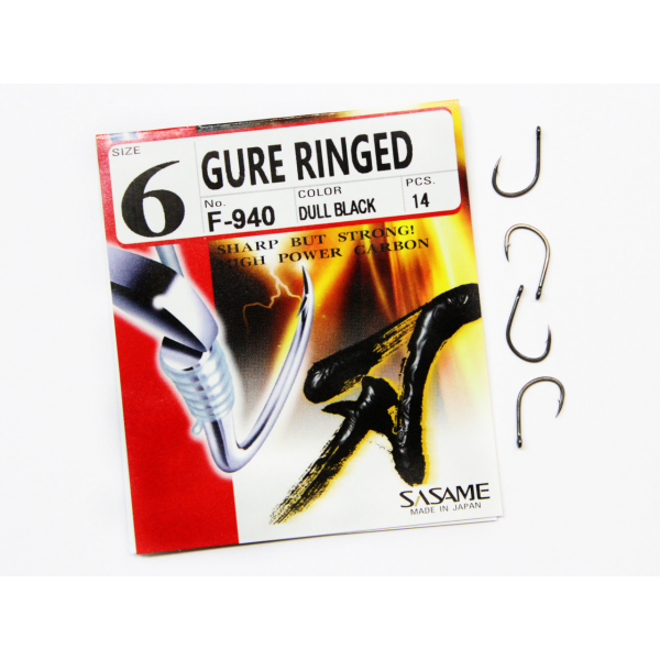 Крючки Sasame Gure Ringed изготовлены из толстой, прочной проволоки, что позволяет рыбачить на крупную рыбу. Маленькие размеры данного крючка, отлична подходят для ловли такой рыбы как карась, линь, лещ на зерновые приманки. Крупные размеры крючка сасаме 940 можно с легкостью применять для ловли не крупно карпа. За счет того, что цвет крючка матовый, что достаточно редко встречается у производителей рыболовных крючков, от него нет бликов и на темном дне крючок практически незаметен. Это дает возможность рыбачить даже на самую осторожную рыбу.