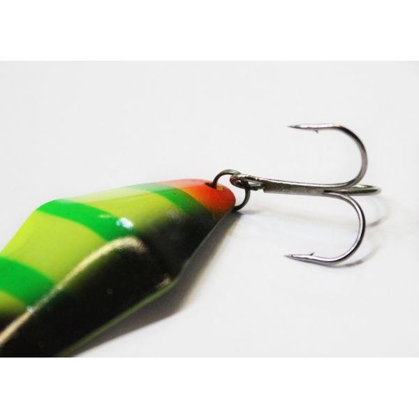 Высокопрочное гальваническое покрытие. Двухкомпонентный эпоксидный грунт. Ручная полировка. Ручная 3D покраска. UV-краска. Блесна: кобра Тип блесны: колеблющаяся Размер: 70мм Вес: 19гр Цвет: 47N Крюч..