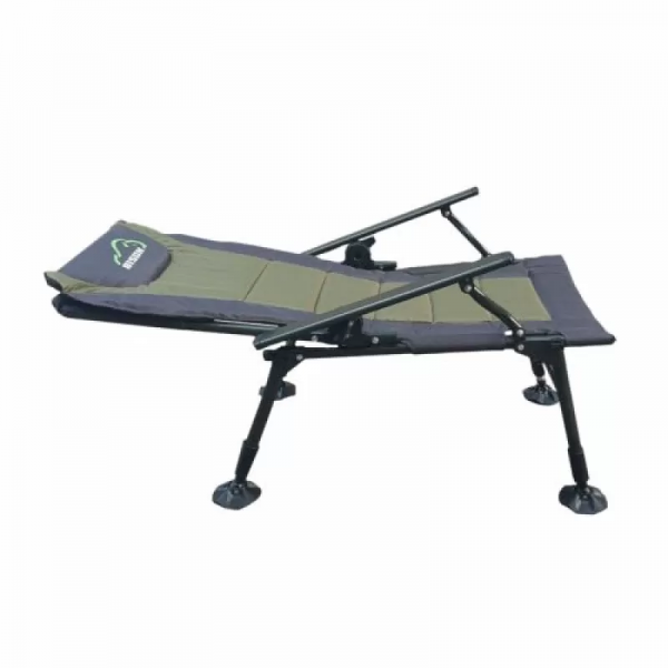 Карповое кресло Bison HBA-1013 — можно отрегулировать по высоте и наклону каждую ножку. На неровных поверхностях это очень актуально. Также спинку можно регулировать по желанию, опускать до положения лёжа, и использовать кресло как раскладушку, тем более, что мягкий наполнитель создаёт приятные ощущения во время отдыха.Кресло крепится болтами, что позволяет без труда повесить на подлокотниках всевозможные обвесы для рыбалки. А ещё таким же образом легко снять ткань для стирки. Нижняя часть спереди усилена дополнительными трубками, что позволяет выдерживать большие нагрузки веса людей.Кресло можно использовать для отдыха на природе, на даче и во дворе. Компактно складывается для хранения и транспортировки.