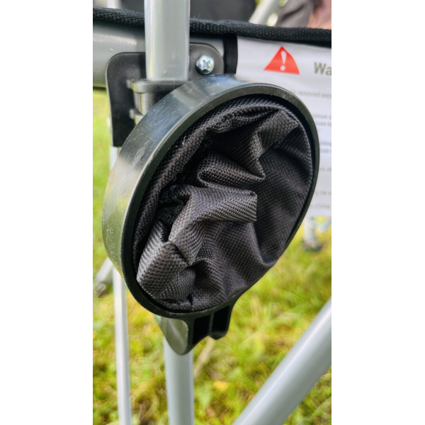 Стул складной с подстаканником VT21-10010. Комфортный, легкий и простой в раскладывании. Оснащен подстаканником и навесным органайзером с кармашками.