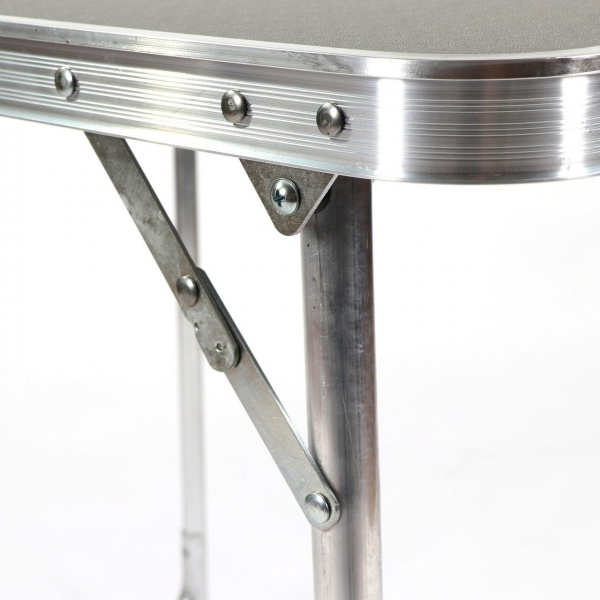 Алюминиевый стол Следопыт подходит для использования на даче или пикнике. Максимальная нагрузка на столешницу из пластика - до 35 кг. Не требует сборки. Компактно складываетсся, что позволяет удобно е..