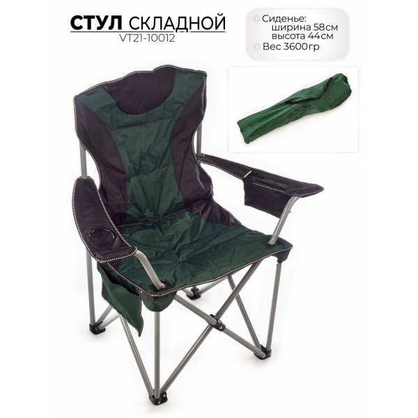 СТУЛ СКЛАДНОЙ Боковой карман, подстаканник, термокарман. Сиденье: ширина 58 см, высота 44 см. Максимально допустимая нагрузка: 100 кг Вес: 3600 гр Размер упаковки: 100х20х15 см..